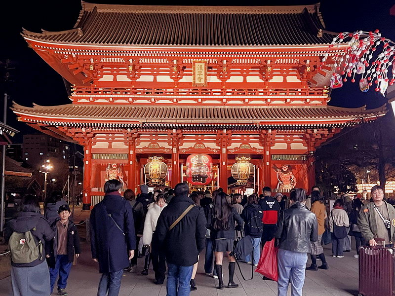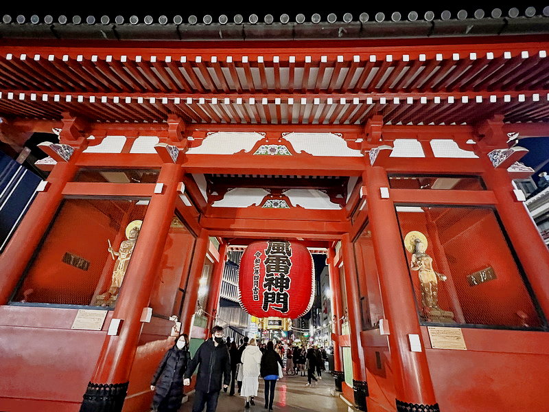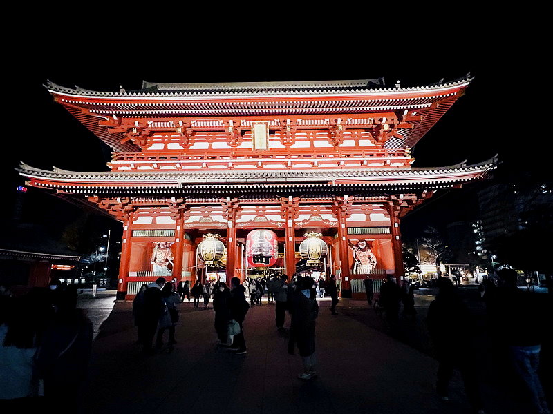 雷門是淺草的旅遊象徵。巨大的紅燈籠和兩側矗立的風神、雷神像,不僅深受訪日遊客的喜愛,也深受日本國內民眾的喜愛。淺草寺每天從日落到晚上11點左右都會點燈。點燈後的雷門、寶藏門、五重塔和本堂在夜色中大放異彩,令人宛如步入夢幻般世界。