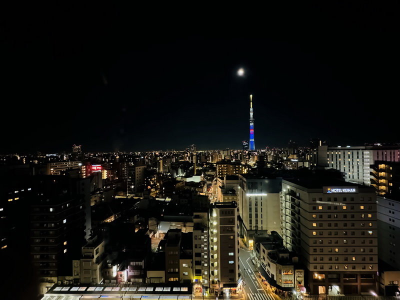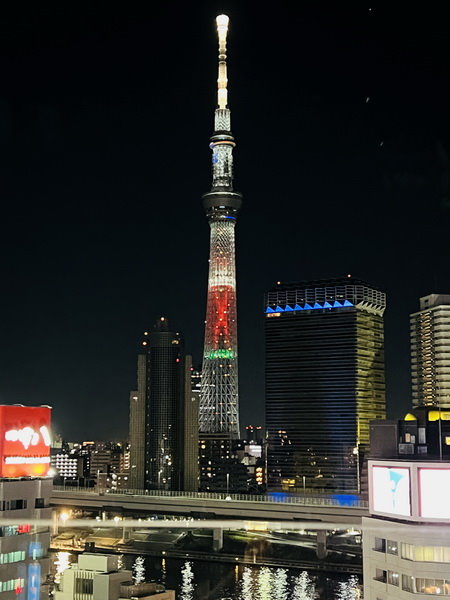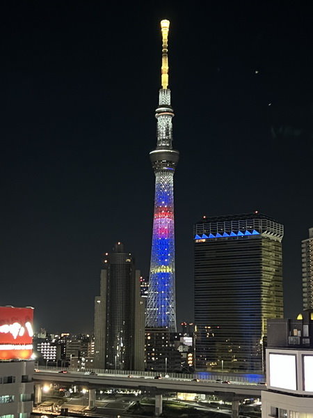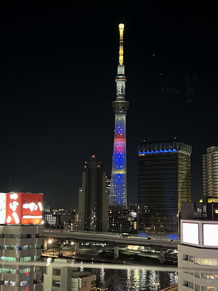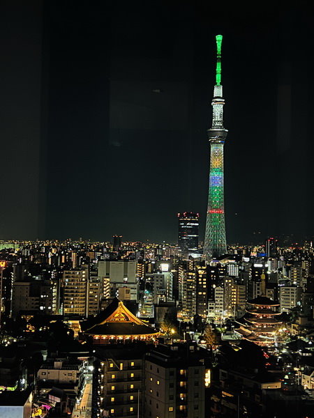 回飯店休息,窗外的東京晴空塔燈光閃耀。