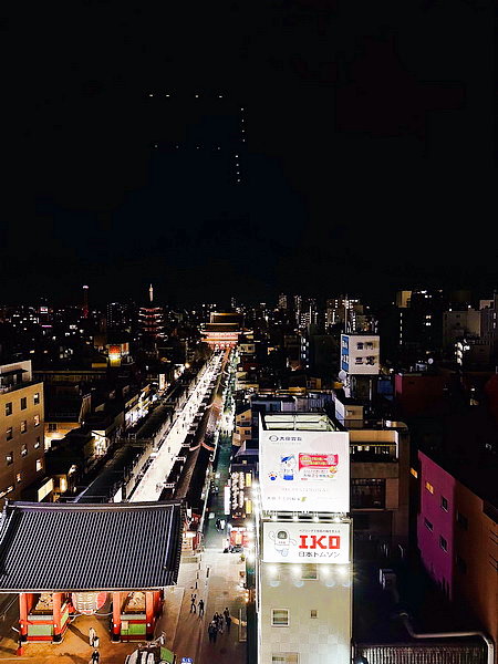 從淺草文化觀光大樓拍攝的淺草寺夜景;雷門仲見世通的俯拍景色,很推!