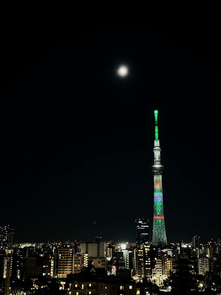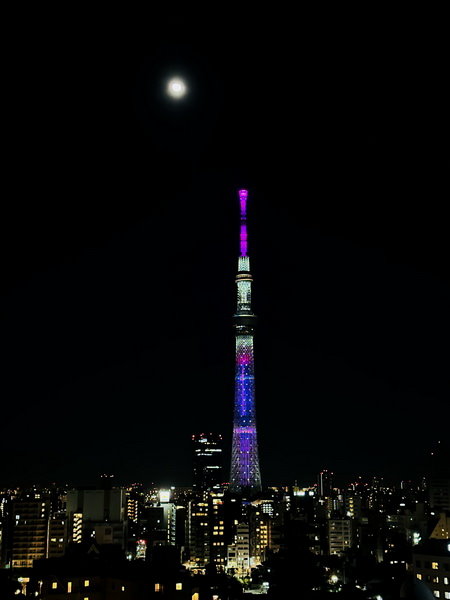 圓圓的月亮也出來欣賞東京晴空塔喔!