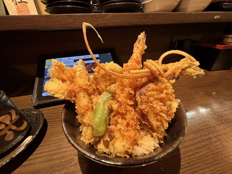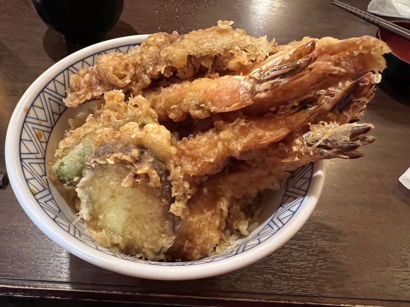 我點的是炸蝦天婦羅蓋飯,有七隻蝦和三種蔬菜,吃到最後覺得炸蝦似乎有點多。