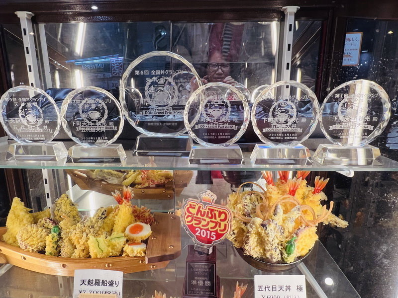 本店特色的極品米飯「五代目天婦羅蓋飯」(每天限量5份) 華麗奢華,含2條星鰻,4種當季食材,5隻蝦,3種蔬菜,聽說是淺草名店秋光本店的驕傲。