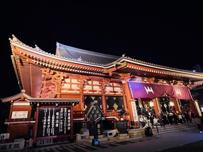 淺草寺位於寺院中心的本殿優美的屋頂曲線和精湛的雕刻工藝,也是日本建築之美的象徵,以其歷史悠久的建築、精美的天花板彩繪和氣勢恢宏的燈籠吸引著許多遊客。