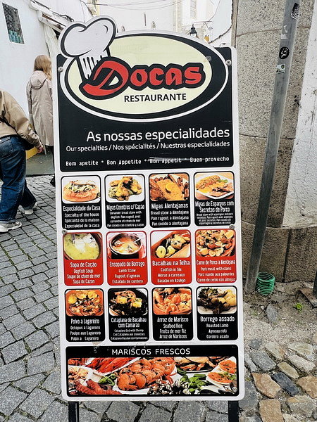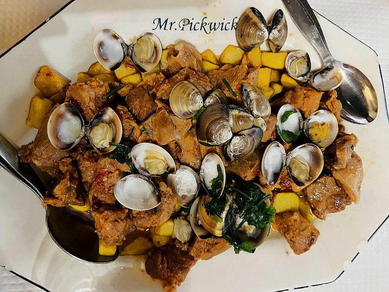 晚餐吃葡萄牙料理,這道蛤蜊燉豬肉是葡萄牙名菜之一,但我們都不覺得有多好吃喔! 漫步在舊城區中的巷道間,頗有詩情畫意感,這個寧靜的小鎮,若旅遊時間充裕,值得來。~待續~
