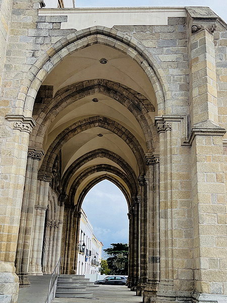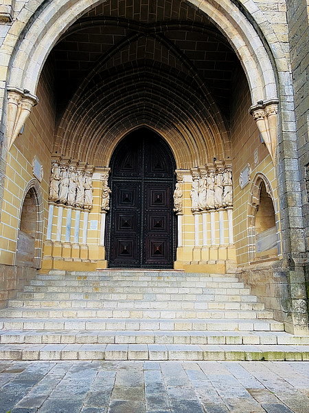這教堂是中古世紀時葡萄牙最大的主教座堂,這教堂的建築風格,融合了哥德及古羅馬式建築風格,大門上的雕塑是耶穌的12門徒。