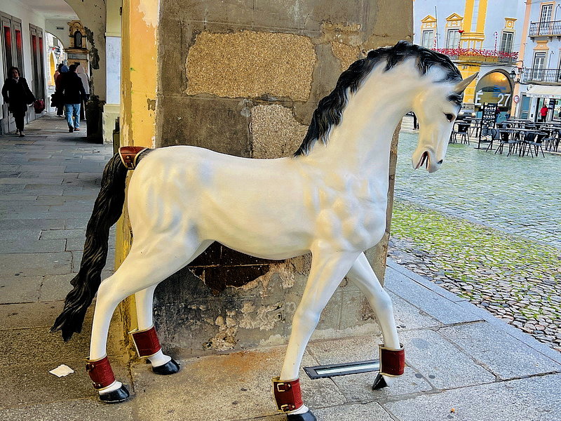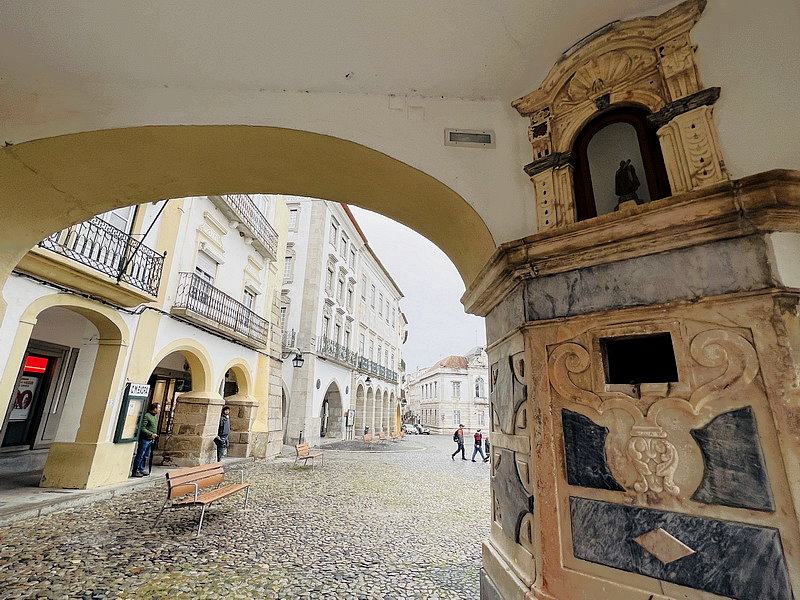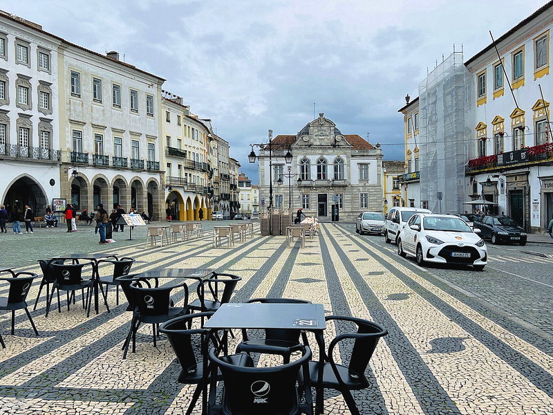 艾佛拉曾經是葡萄牙王國繼里斯本之後的第二大重要城市。但3月中走進艾佛拉,雖然各時期的建築風格雕琢了艾佛拉的繁華過去,留下歷史的印記;羅馬人的智慧、哥德的壯觀、摩爾風格的華麗對照阿連特茹這個地區的貧乏。中間地標的Giraldo Square Fountain噴泉目前沒有水,是否也代表艾佛拉的沒落?