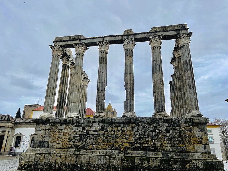 黛安娜神殿Roman Temple of Évora位於葡萄牙艾佛拉的聖伯多祿堂區,一座建於2世紀並供奉古羅馬月神黛安娜的古羅馬神廟,建築僅剩一半的根柱子挺立著,表面也被磨平、失去了稜角,這副飽經風霜的模樣,卻是伊比利半島上保存最好的羅馬古蹟。雖然名字中有「神殿」二字,但黛安娜神殿實際上是一座帝國風格的狩獵行宮,並和同地區的其他建築一樣,由約瑟夫・哈德穆特提出設計構想,隨後由建築師約瑟夫・科恩豪塞爾建造。