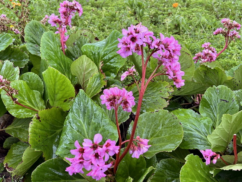 花圃種植著長葉虎耳草重瓣的粉紅花朵有夠艷麗