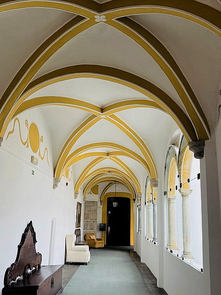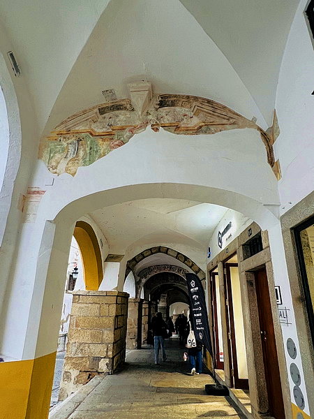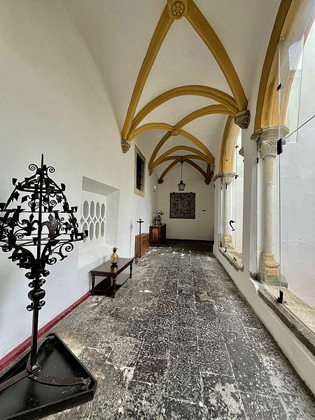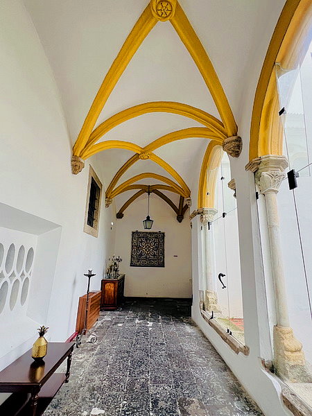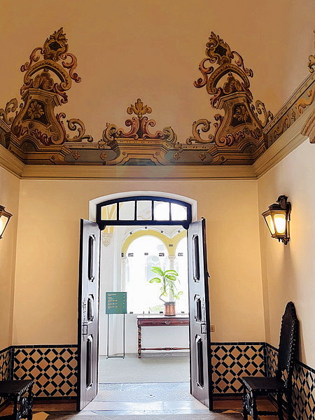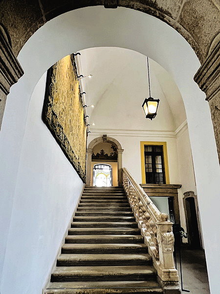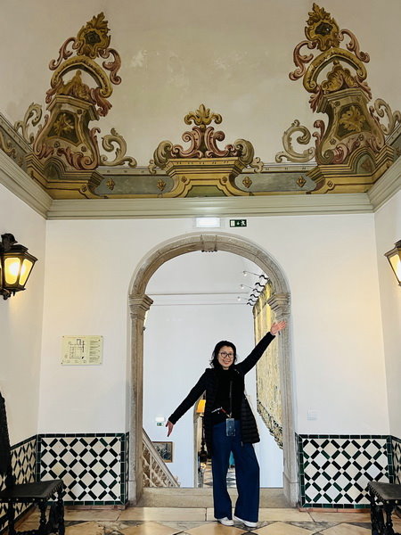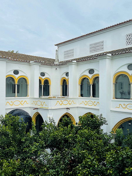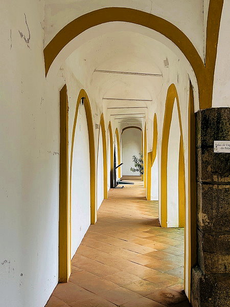 鑲黃色條紋的迴廊很有葡萄牙風格喔!