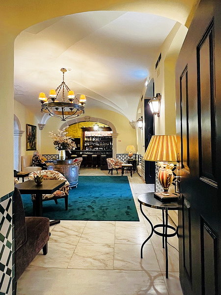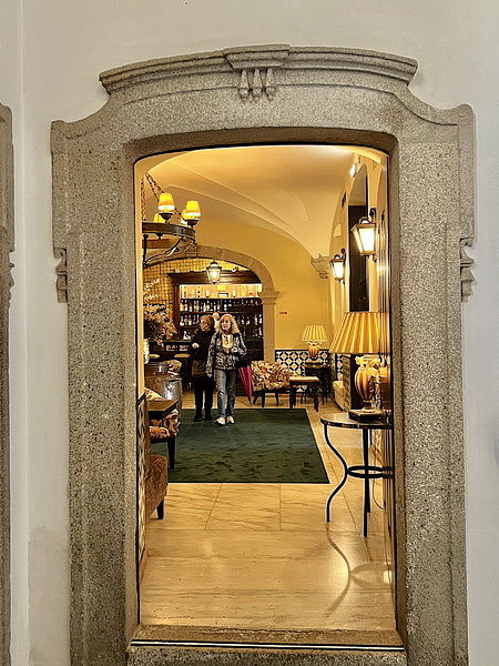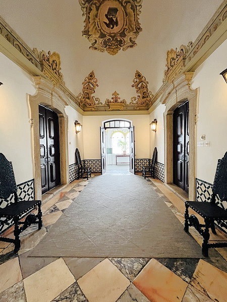 我們特喜歡飯店內的迴廊,廊頂有黃色的線條鑲邊超有葡式風。