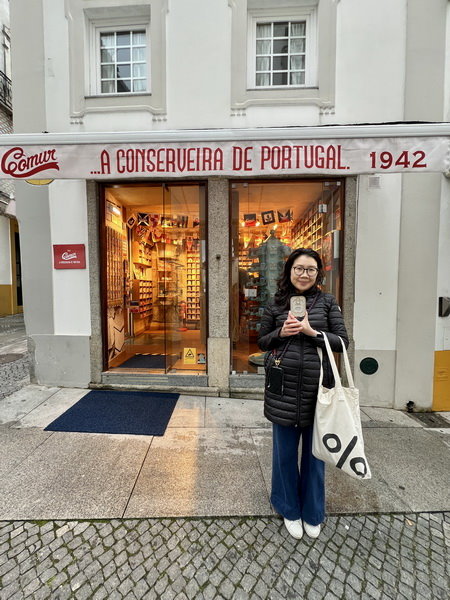 葡萄牙作為海洋國家,歷史悠久的捕魚歷史與海鮮加工製品相當有名,這間Conserveira de Portugal是不少觀光客會來朝聖的地方,帶上幾個特殊風味的沙丁魚罐頭回家當伴手禮。C導有做功課,她計畫逛好再來採購。