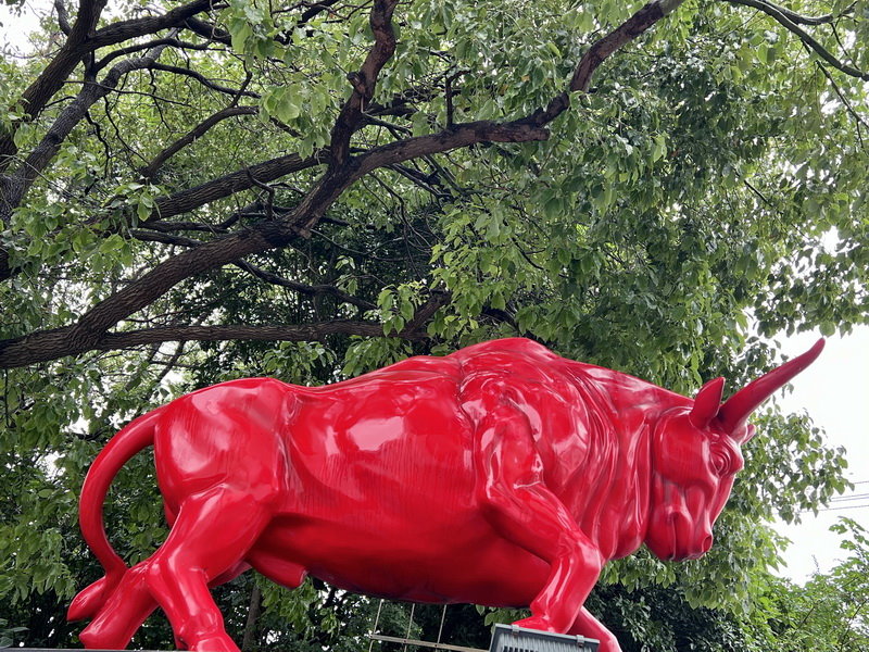 因為住宿在豫園萬麗酒店,起床後覺得離豫園這麼近,居然沒去逛逛好像對豫園很失禮ㄝ!於是和W決定去探險,從酒店後方走路約5分鐘而已,轉角這隻紅牛也太醒目啦!
