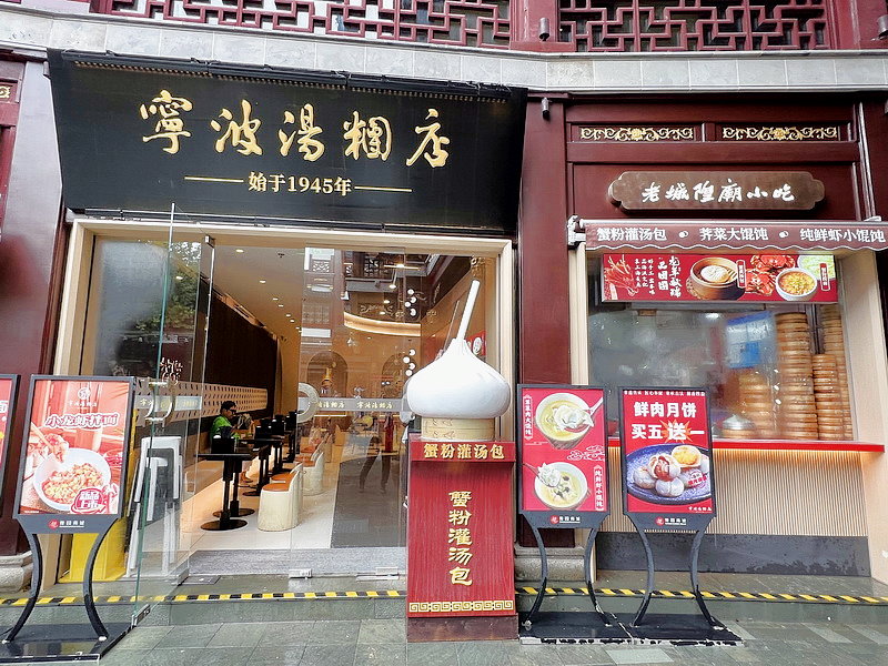 位於九曲橋畔的南翔饅頭店起源於光緒年間,公元1900年,當時在嘉定南翔鎮做小籠包的吳翔升來到城隍廟開了一家點心店,起初叫長興樓,後來改為南翔饅頭店,是吃南翔小籠包最地道的地方,號稱天字第一號的招牌。