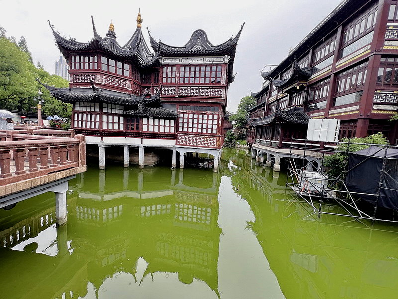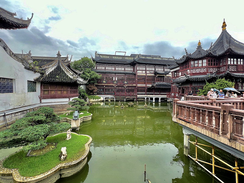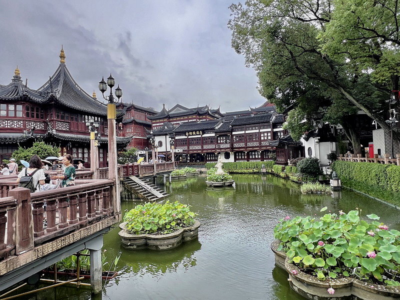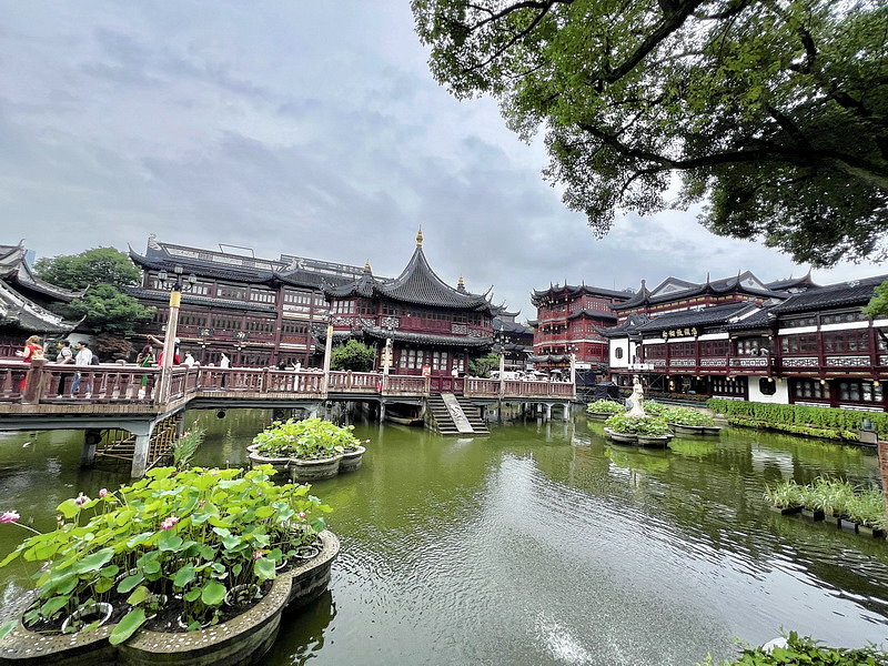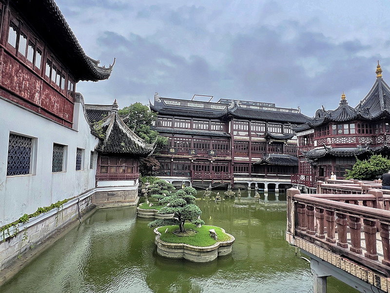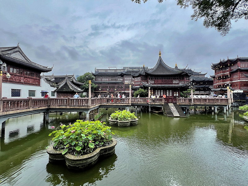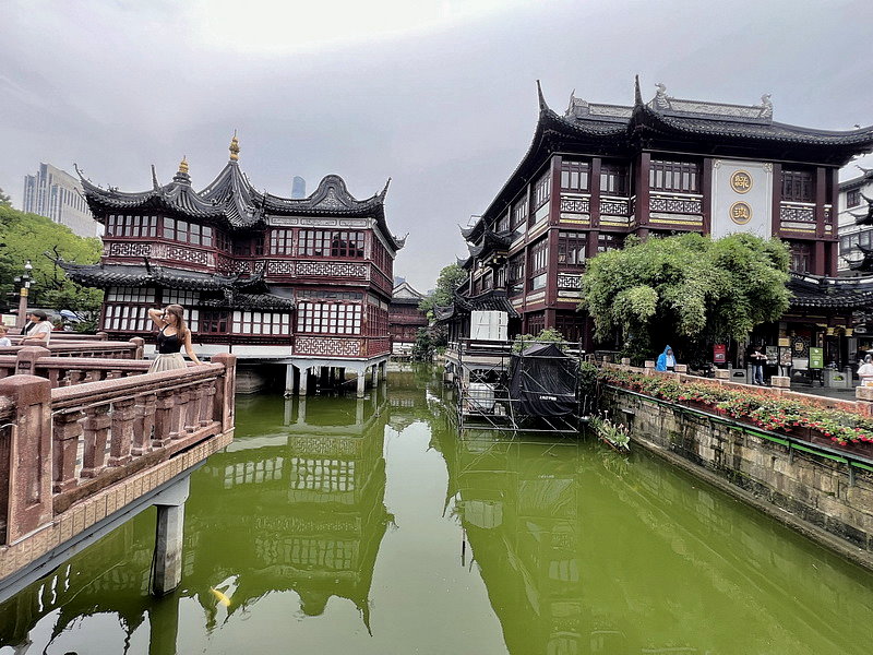 走在九曲橋上,豫園景區內一座座的中式建築有如宮殿般的佇立,感覺好像是來一趟時空旅遊喔!