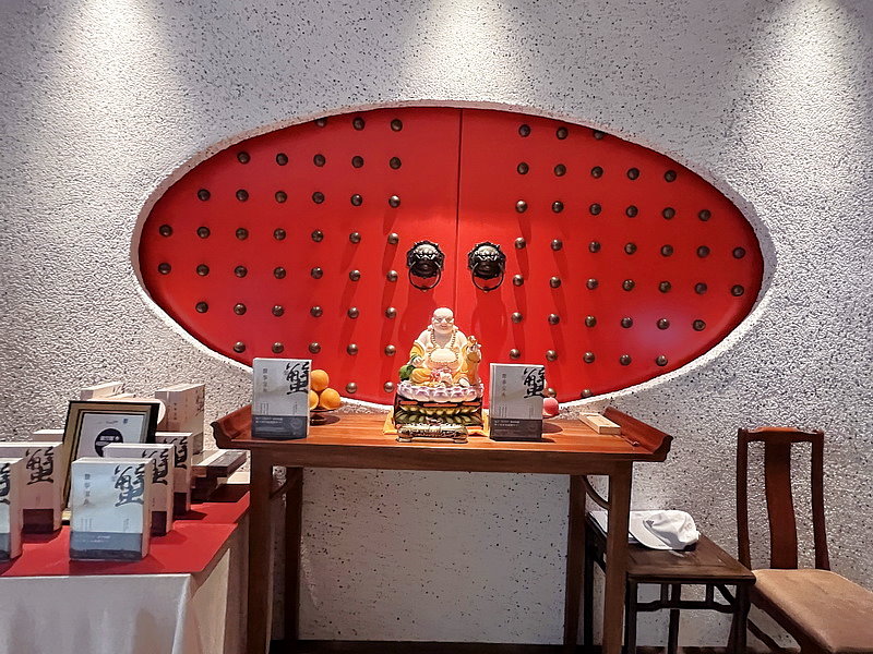 來到上海成隆行蟹王府,只見大門的對聯書: 「半邊爐裡蒸乾坤,一隻蟹中藏世界」。光是餐廳的名字「蟹王府」就可見其氣勢及高檔,是米其林一星蟹料理。
