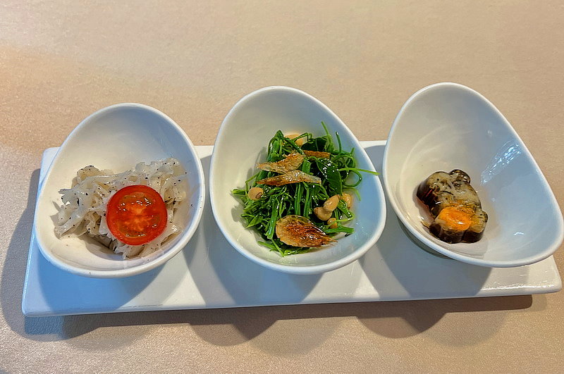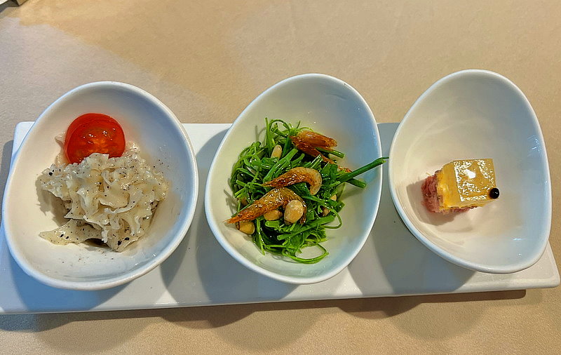 簡單的形式與看似高級的盛器,主要是讓你先開開胃。