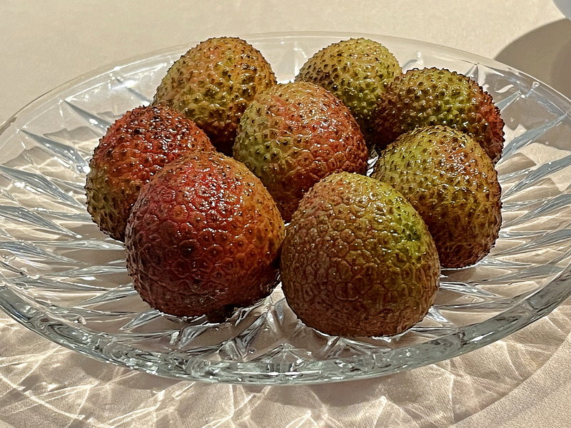 看這幾粒荔枝裝在盤上,聯想到我們好似過著楊貴妃的生活喔!!!