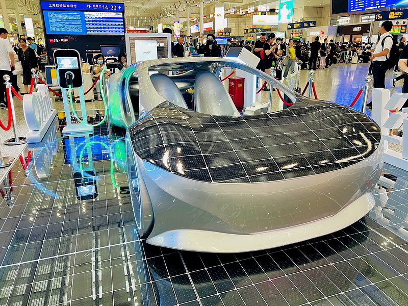 虹橋火車站候車大廳居然還展示著新科技的電動車