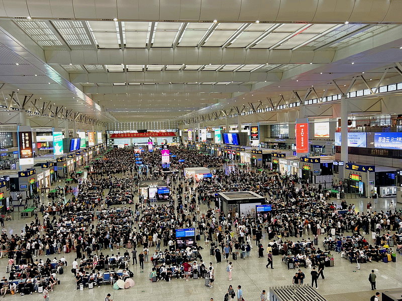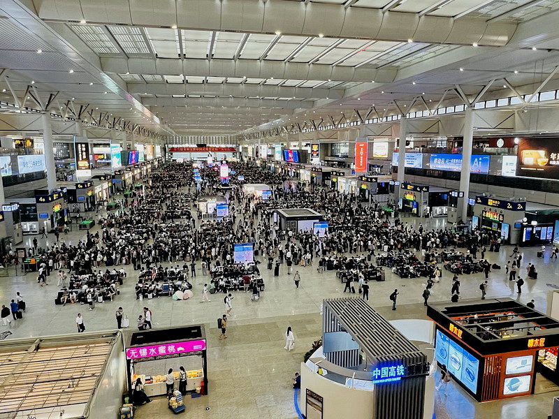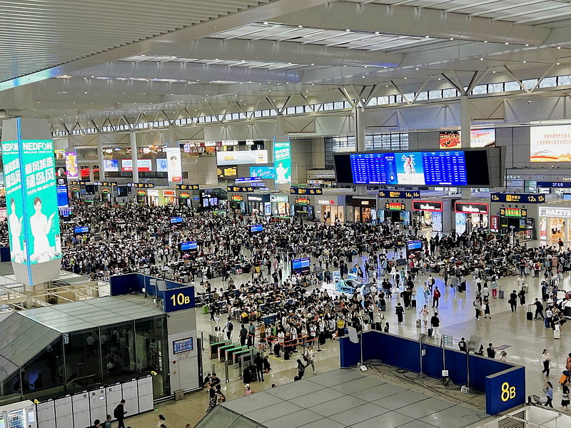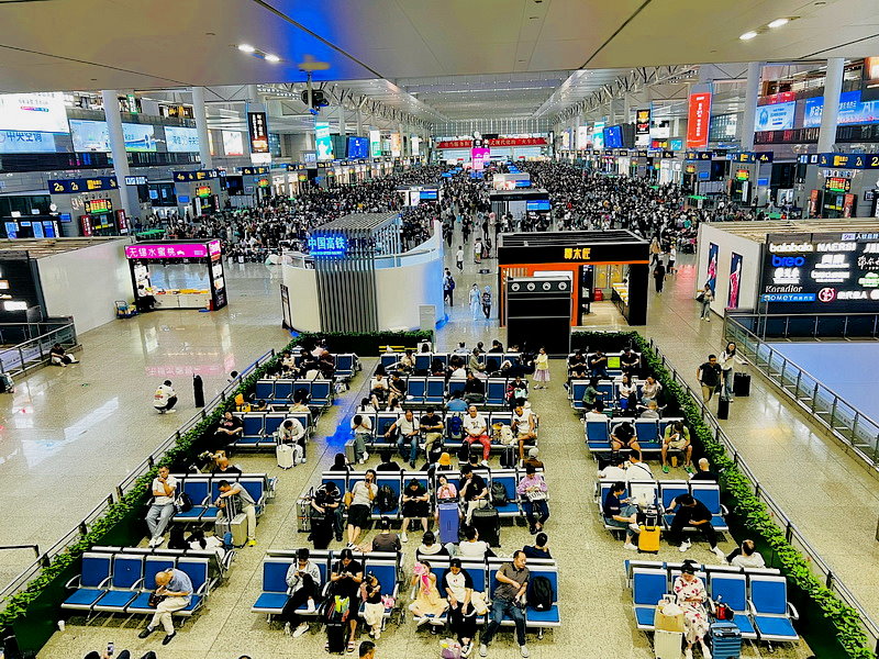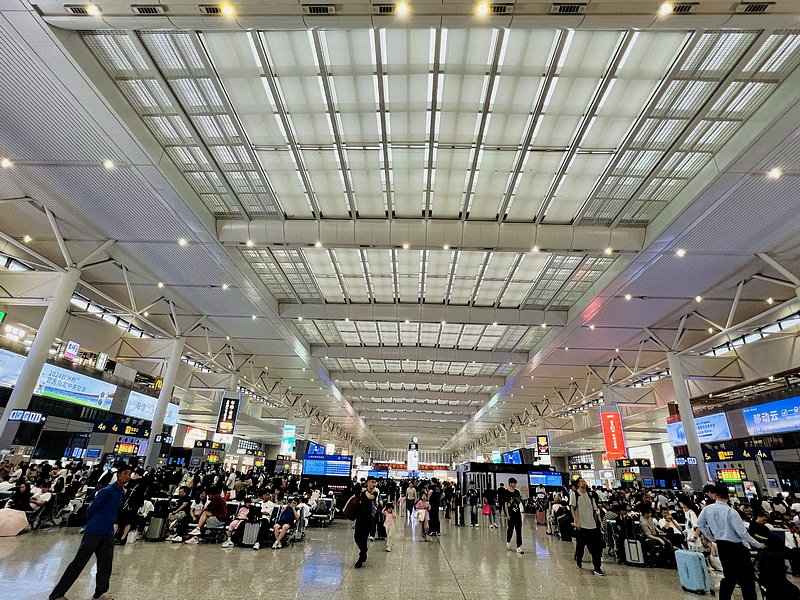 虹橋火車站候車大廳平時就有夠熱鬧,還真是無法想像過年過節時充滿返鄉遊子的盛況喔!