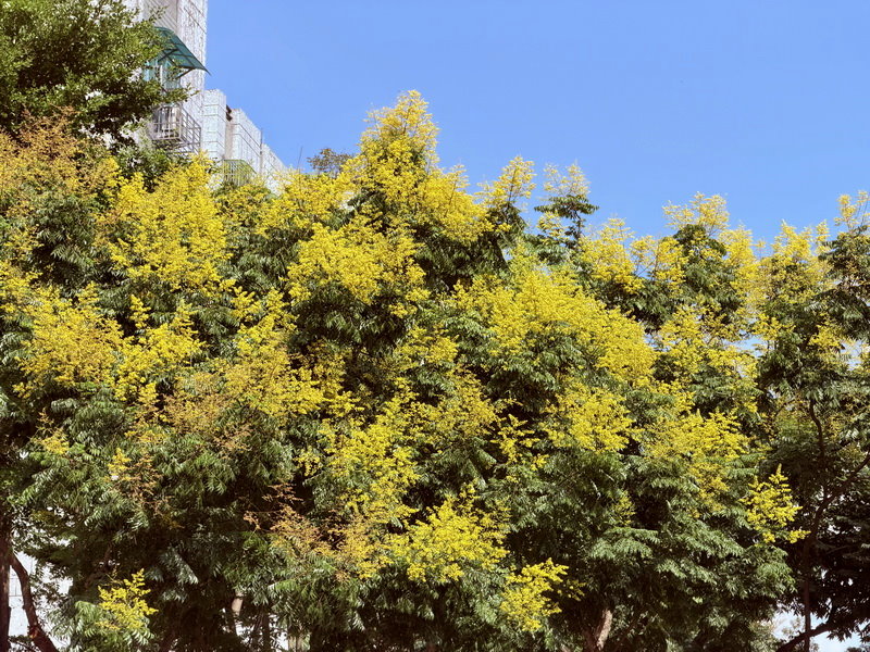 教師節到中秋節有兩個連假,shine專程到台北和家人共度;9月底臺灣欒樹開出頂生圓錐花序,黃色小花燦爛佈滿樹冠,因此有個美麗的英文名稱 Taiwan Golden-Rain「台灣金雨樹」。