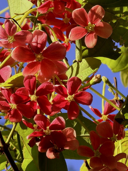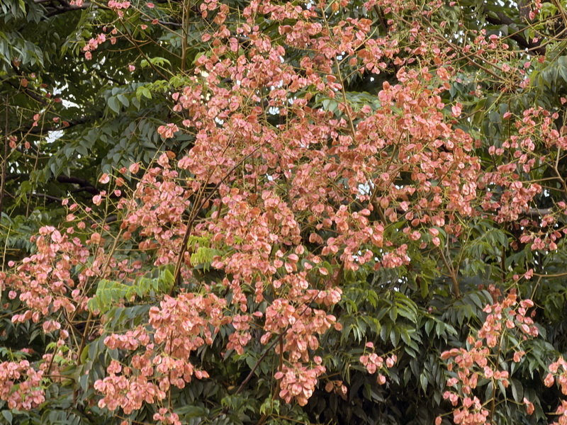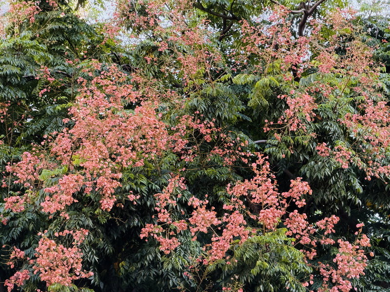 臺灣欒樹(Koelreuteria elegans ssp. Formosana),又名苦楝舅、苦苓江、金苦楝、拔仔雞油、臺灣欒華、木欒仔、五色欒華,春、夏長綠葉,初秋開黃花,秋末蒴果未熟時紅色,冬季蒴果成熟為褐色。不過幾天,黃色花叢出現紅斑,黃花開始落地,撒落一地花雨,授過粉的雌蕊隨即結成覆有嫩紅苞片的蒴果;