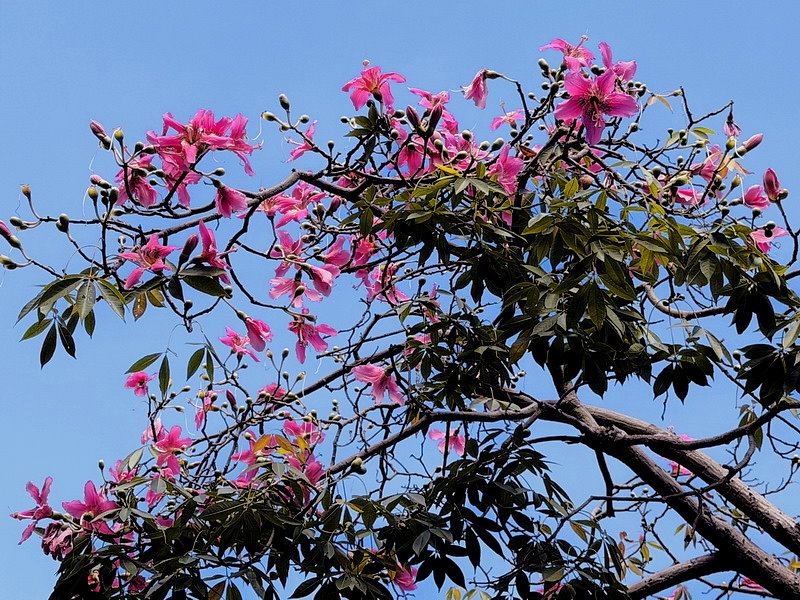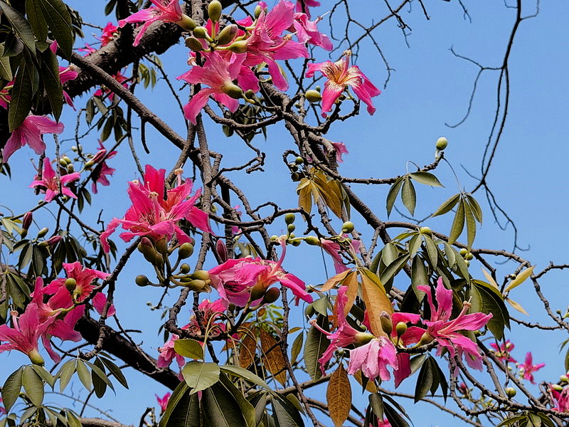 好多美人樹,讓shine真是欣喜若狂;美人樹(Silk floss tree or Floss silk tree),別名:美人櫻、酒瓶木棉、美麗異木棉。