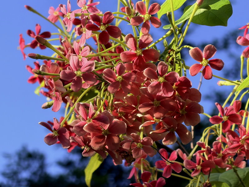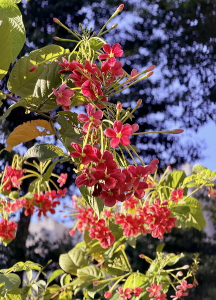 使君子(Rangoon creeper)是一種常綠攀緣狀藤本植物,花期長達8個月。另外還有好多俗稱,例如:山羊屎、仰光藤、醉水手、色干子、留求子。