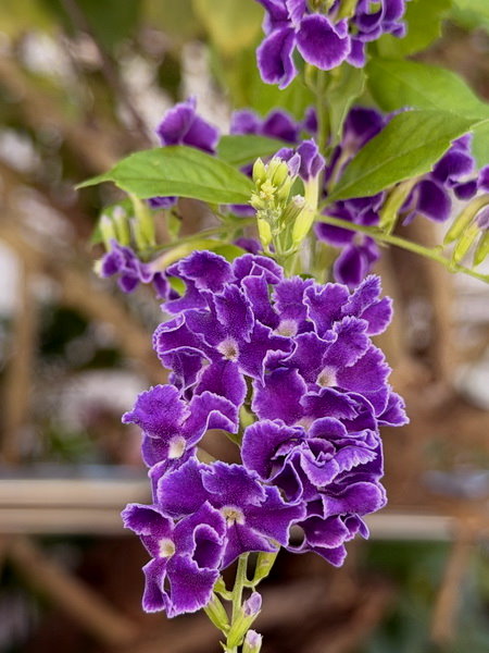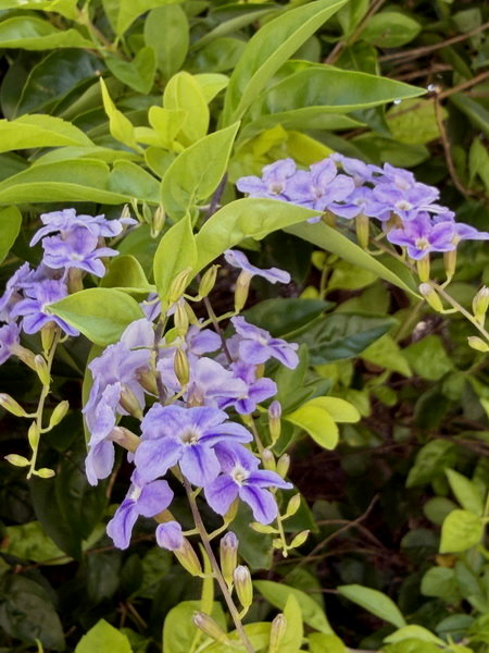 金露花(Duranta erecta,中國大陸作假連翹),又名洋刺、番子刺、花牆刺、籬笆樹、小本苦林盤、如意草。對生葉片光亮,葉形橢圓,葉緣有粗鋸齒,葉腋處或有細尖刺。花開於枝端與近枝端葉腋,總狀花序斜伸或下垂,淺藍色花冠5裂。