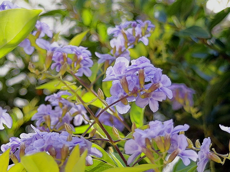 我偏愛蕾絲金露花,花色藍紫具有白色鑲邊。開花期全年,花後會結晶瑩金黃色果實,果實和葉子有小毒。
