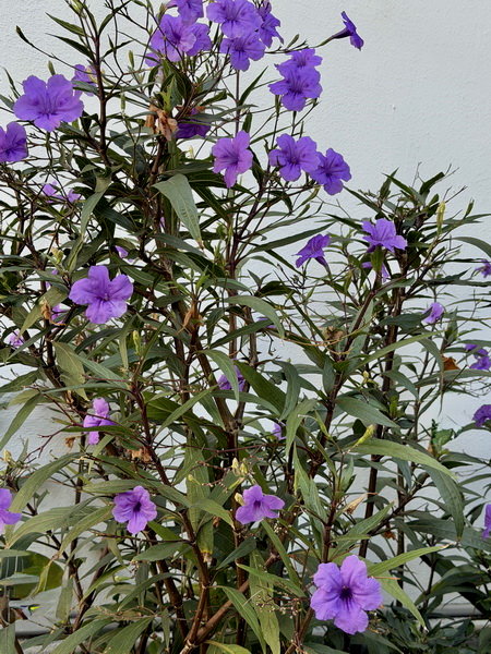 紫花蘆莉草又名翠蘆莉(Ruellia simplex)原產於墨西哥,翠蘆莉花冠喇叭形花色除了常見的紫色,也有粉紅與白色品種;引進後在台灣已經氾濫到處可見。