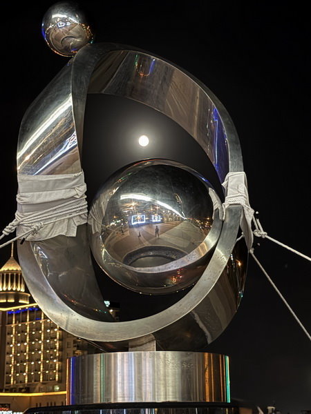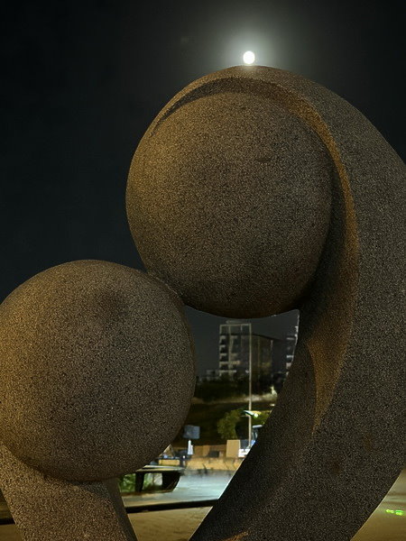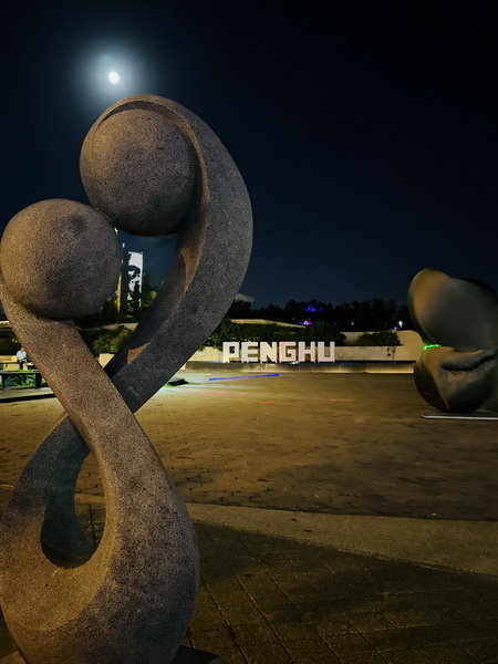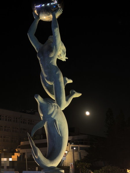 利用澎澄飯店三號港前的地標玩一下超級月亮
