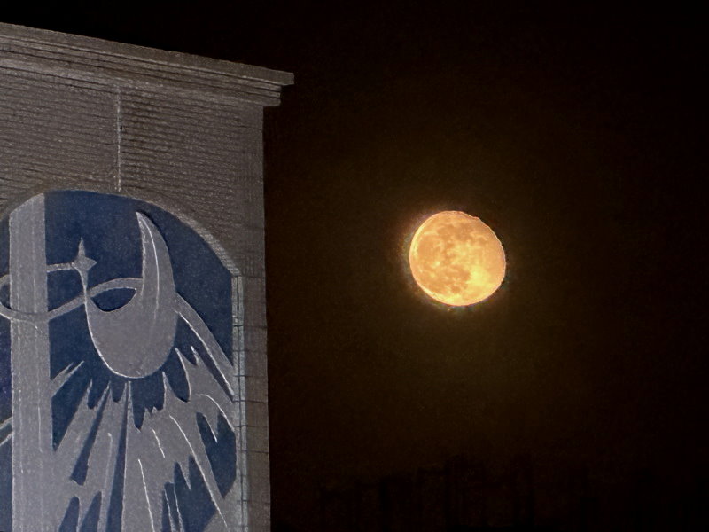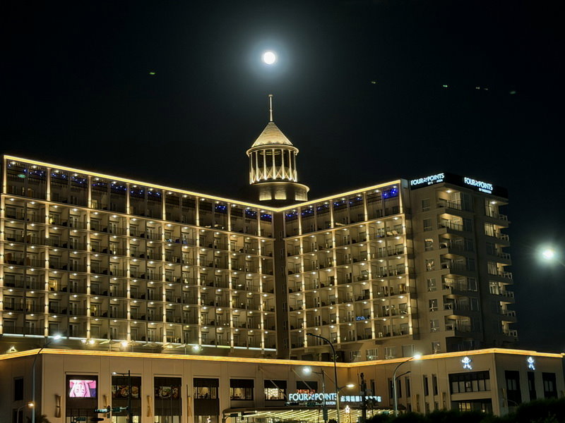 超級月亮居然跑到福朋喜來登的塔樓啦!