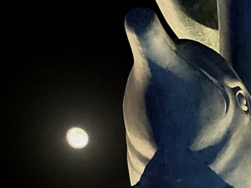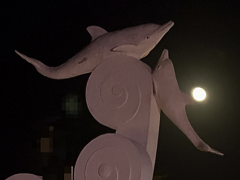 走到海豚亭,超級月亮又想玩一下捉迷藏。