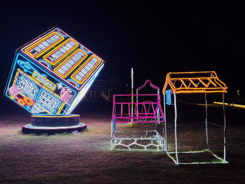 在此,音樂、海洋及菊島的符號,轉譯成光影敘事的輪廓,宛如一場發光的澎湖潮汛。引光入島,是為了讓旅人的「光臨」,成為光的本身。