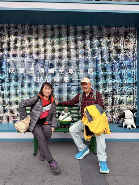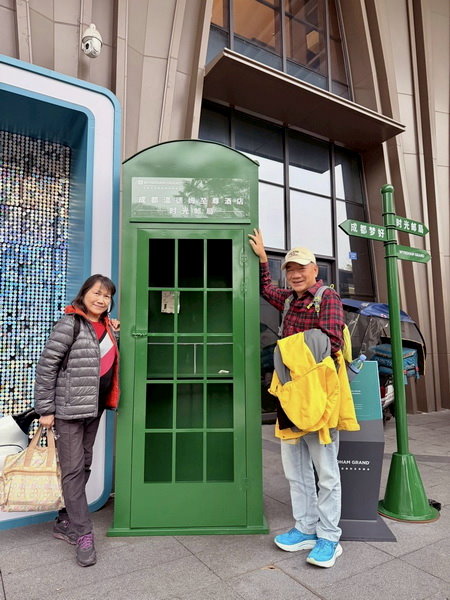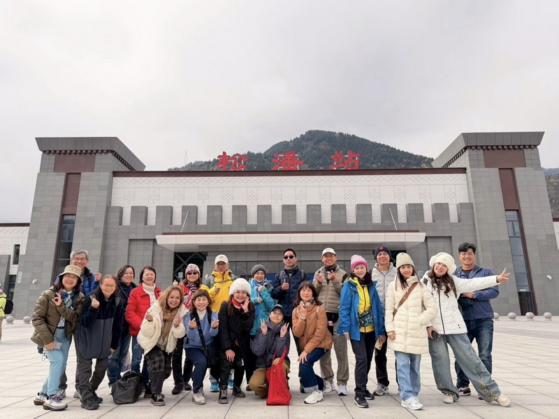 早餐後直接搭乘動車前往松潘,出發前小虎領隊分別幫團員在飯店附近拍照。