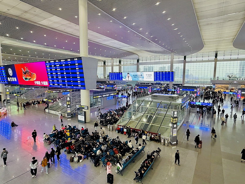 成都高鐵站感覺不是很熱鬧,大概是shine最近去過上海、杭州及長沙高鐵站,都特別熱鬧shine才會有此感覺吧!不過車站也是二層樓建築物,樓上有很多飲食賣店,也有看到重慶小面,但W卻不想再去嘗試啦!