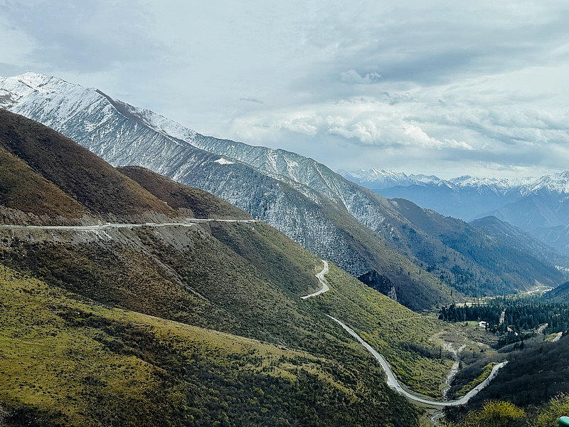 翻越埡口前要經過一段連續28拐的盤山公路。