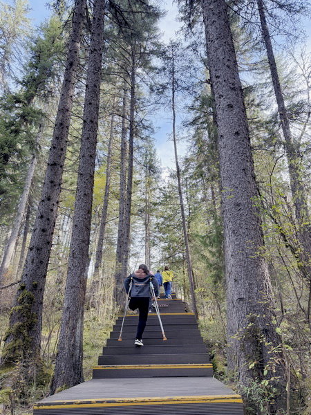 沿途看到有位獨腳的女遊客扶著拐杖,絲毫不畏怯,孤獨的登上階梯前進,永不放棄的精神真是令人感動與敬佩。