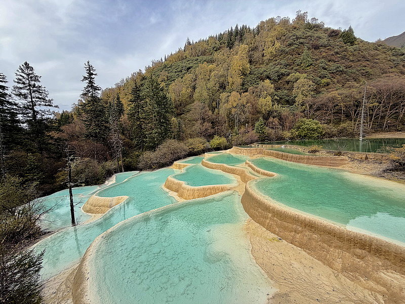整個景區被浩瀚無邊的原始森林包圍,蘊藏了1180餘個蓮台彩池、50餘個彩池玉瀑、6個鈣化灘、4個海子,最特別之處在於它是目前世界上為數不多,能同時看見高山湖泊和鈣化彩池的景區。