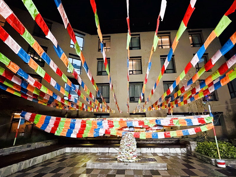 到達九寨溝魯能希爾頓度假酒店時,遊覽車也已經到啦,放好行李後先去吃晚餐啦! 九寨溝住宿區到處裝飾得很好看。