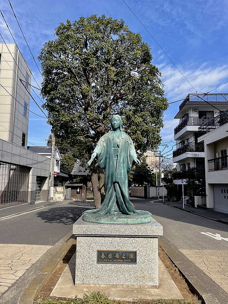 路旁矗立著春日局之像;春日局本名齋藤福,後來成為江戶幕府三代將軍德川家光的乳母,奉命前往皇宮覲見後水尾天皇,得到天皇賜號「春日局」。