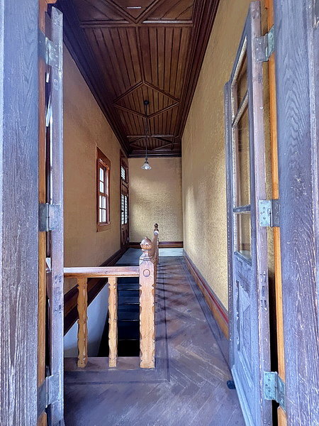 這座刷上白漆,雙層還附加塔樓的壯觀宅邸,乍看之下還真讓人有用石材打造的錯覺,但它卻是一座精雕細琢的木造建築。從梁柱到門窗,甚至平常不會留意到的遮簷下方,到處都是精緻的浮雕。