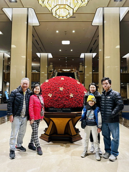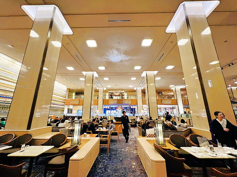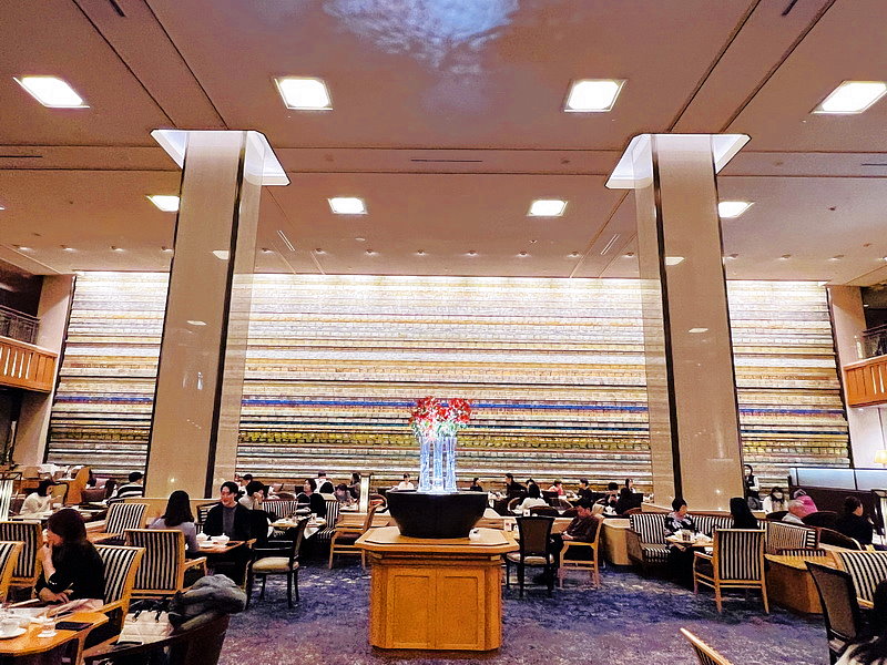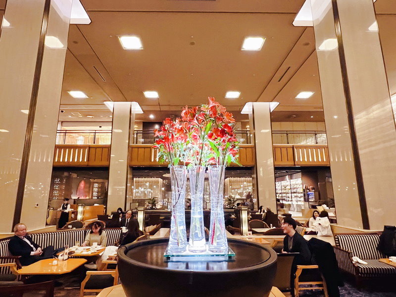 晚餐因玉爸和朋友有約,時間還早,W建議去東京都的帝國飯店(IMPERIAL HOTEL, TOKYO)喝咖啡休息片刻。老錢風的優雅在各處體現得淋漓盡致,開闊的大堂吧呈現色彩美學,大堂的鮮花聽說每日更換,生機盎然。