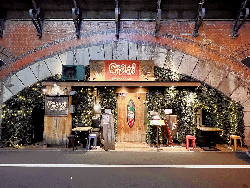 晚餐是玉爸朋友訂的"爐端";我們才有機會來百年歷史的紅磚拱門高架橋下用餐。