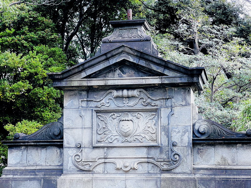 轉角牆上的勳章飾中央,雕刻的是岩崎家的家紋「三階菱」。MITSUBISHI三菱發跡於幕末時期,出身於土佐的三菱財閥創始人岩崎彌太郎原本只是一介浪人,卻因其學識及經商天分而受到土佐藩重用,主掌土佐商會,並成為後來三菱的基礎。明治維新後,三菱以海運起步,彌太郎憑藉著與維新功臣的關係,承攬並壟斷了許多政府事業。而岩崎彌太郎之子,三菱第三代的岩崎久彌更是將事業版圖擴及到金融、礦業及各種輕、重工業,成為支持日本產業命脈的最大財閥。