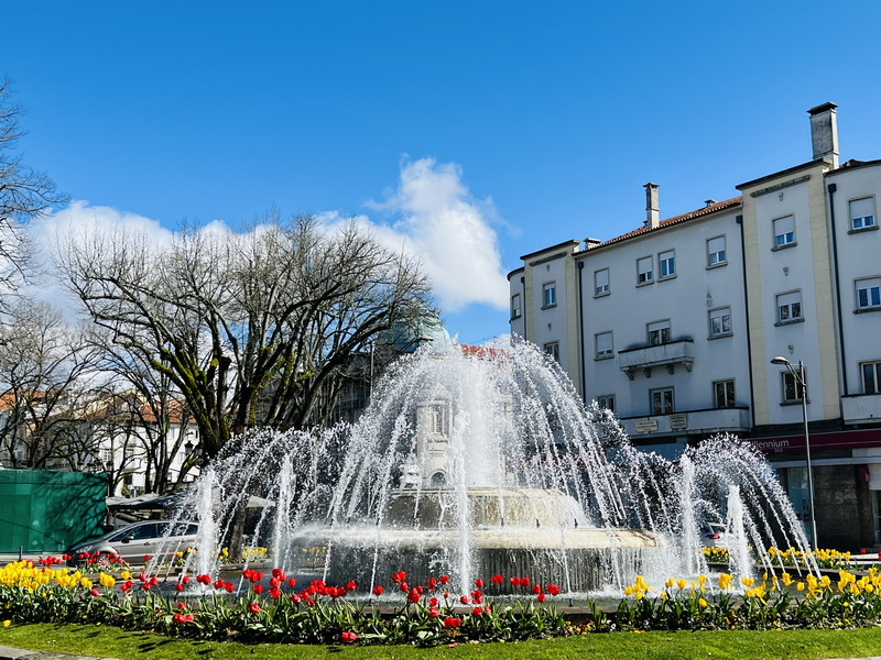 維塞烏是一座適合步行的城市,路口中央的噴水池Painel de Azulejos熱情的歡迎遊客來參觀。