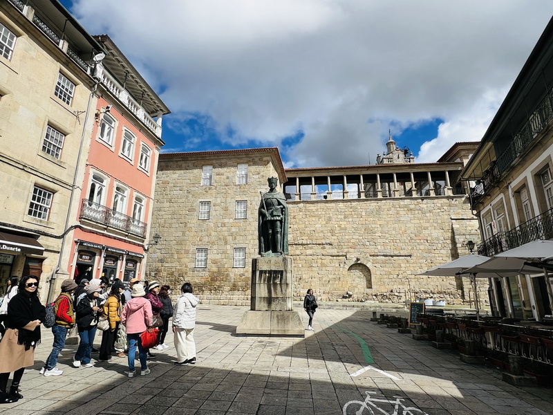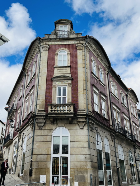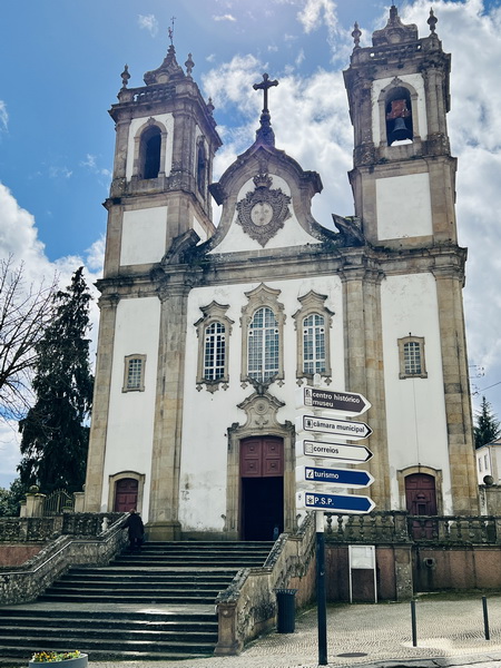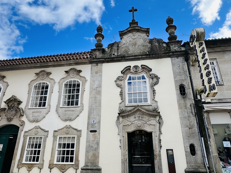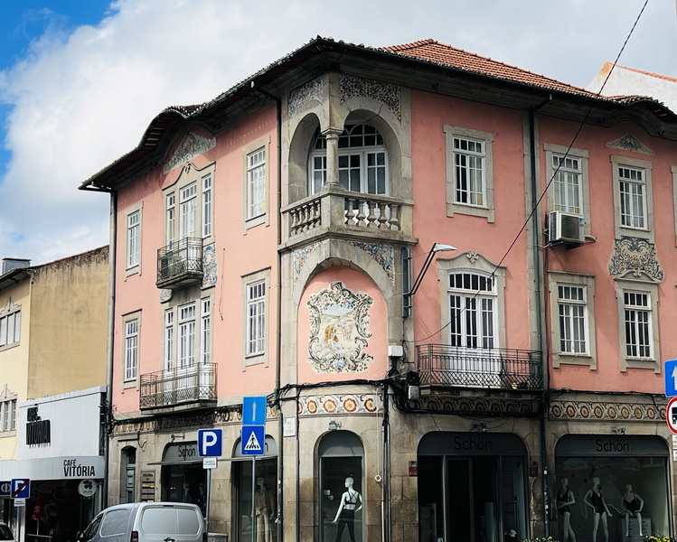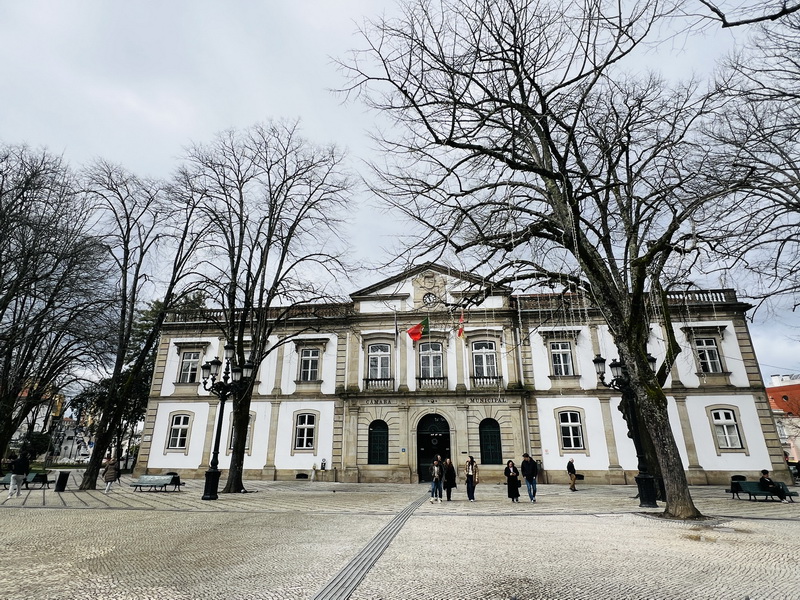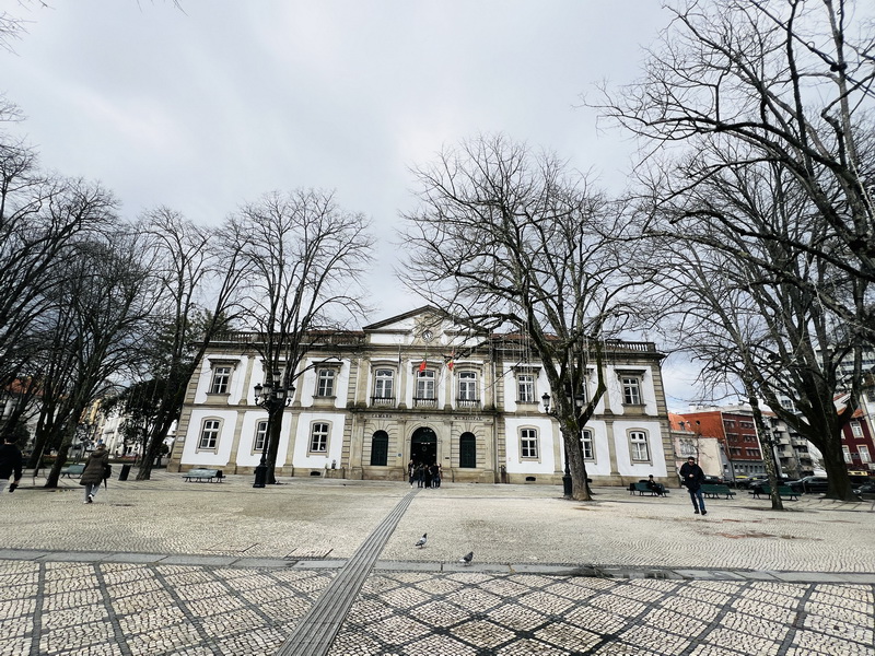 路過維塞烏市議會Câmara Municipal de Viseu;建築平面呈矩形,體積簡潔,屋頂為山牆式。兩層立面由楣飾或簷口分隔,楣飾上飾有環形紋飾和簷口,基座、窗框和轉角處的壁柱均採用花崗岩砌塊;