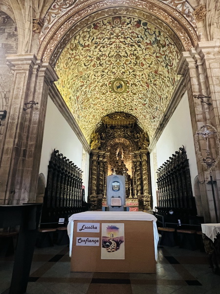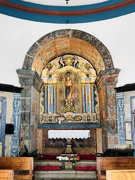 聖壇有一個令人印象深刻的金色雕刻祭壇畫,其中的圖像聖母升天守護神瑪麗亞。