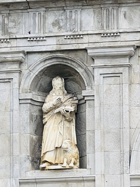 維塞烏大教堂正面有六個壁龕,上面有石雕 四位傳道者,雕像聖狄奧托尼和雕像維塞烏的守護神。
