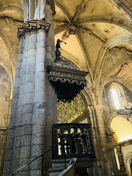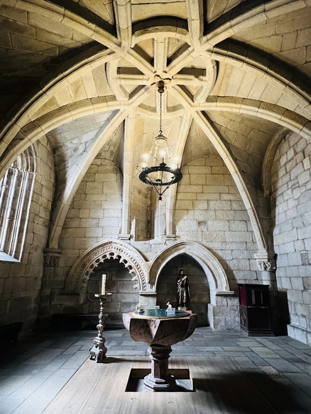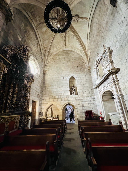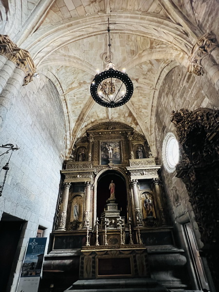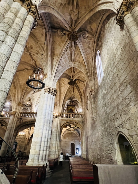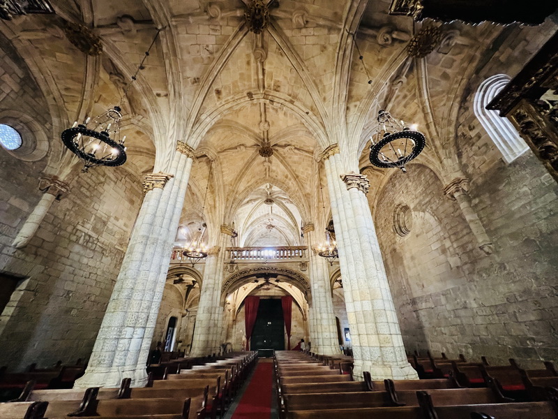 特別令人印象深刻的是拱形曼努埃爾天花板,其肋骨雕刻成類似打結的繩索。下層的圓形拱門,就像外面的雙層迴廊一樣,是義大利文藝復興時期建築早期的樣式。